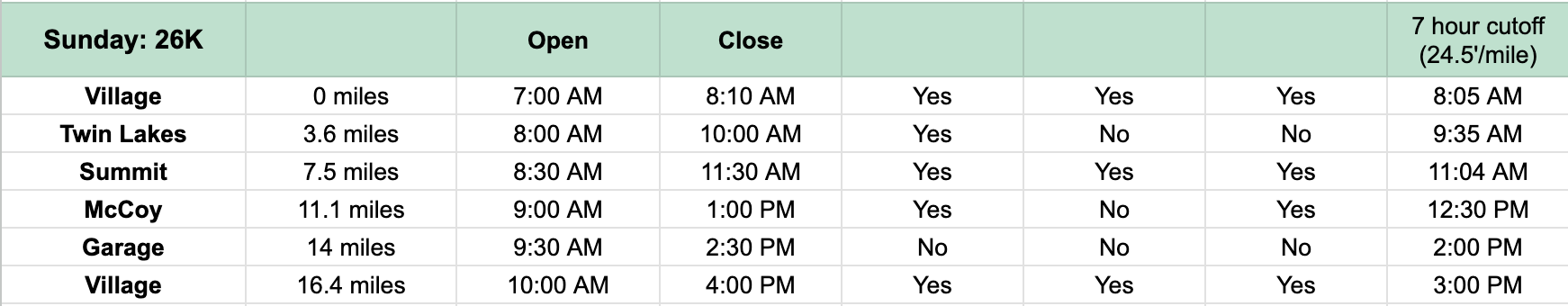 generous 7 hour cutoffs to promote participation from all abilities- 97% finish rate in 2025! details on cuttoffs in table below